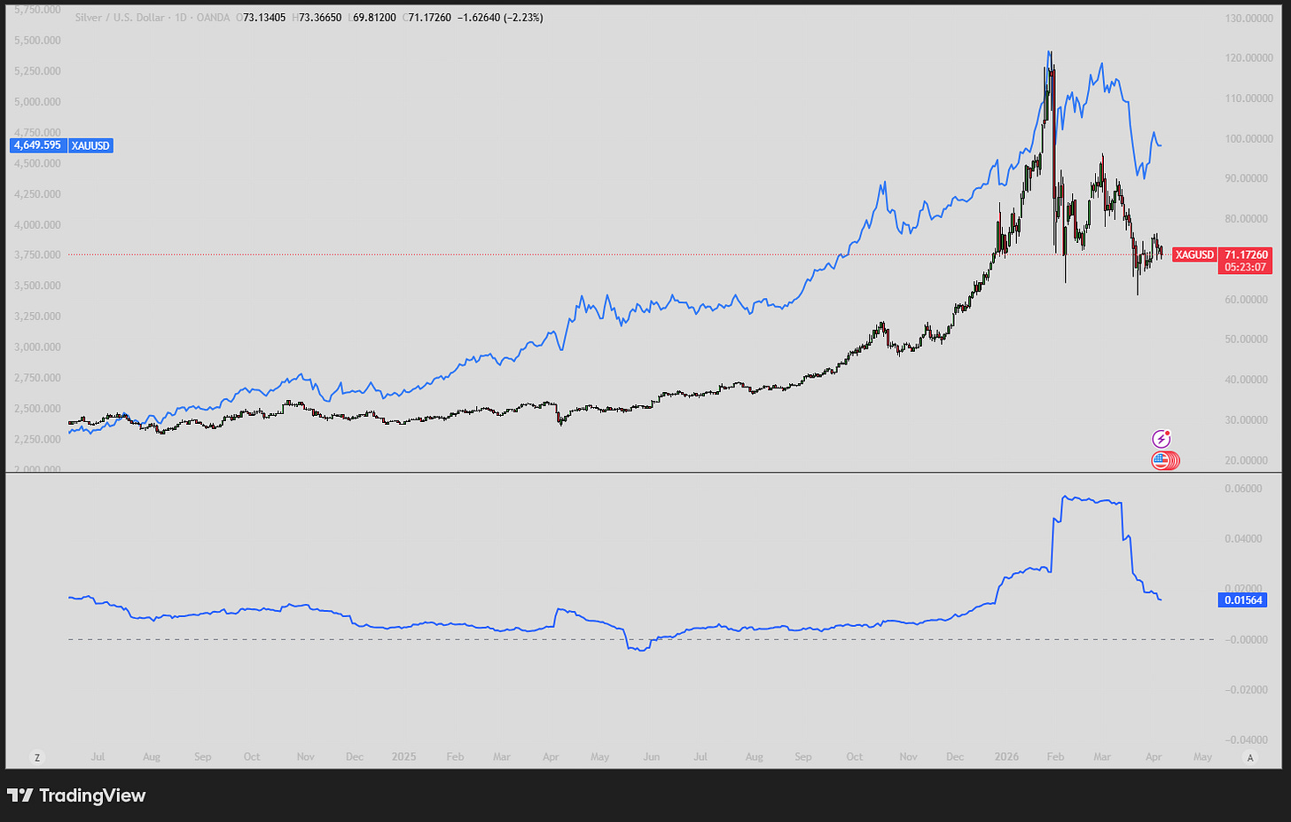 The most important metric here is the volatility spread between silver and gold.